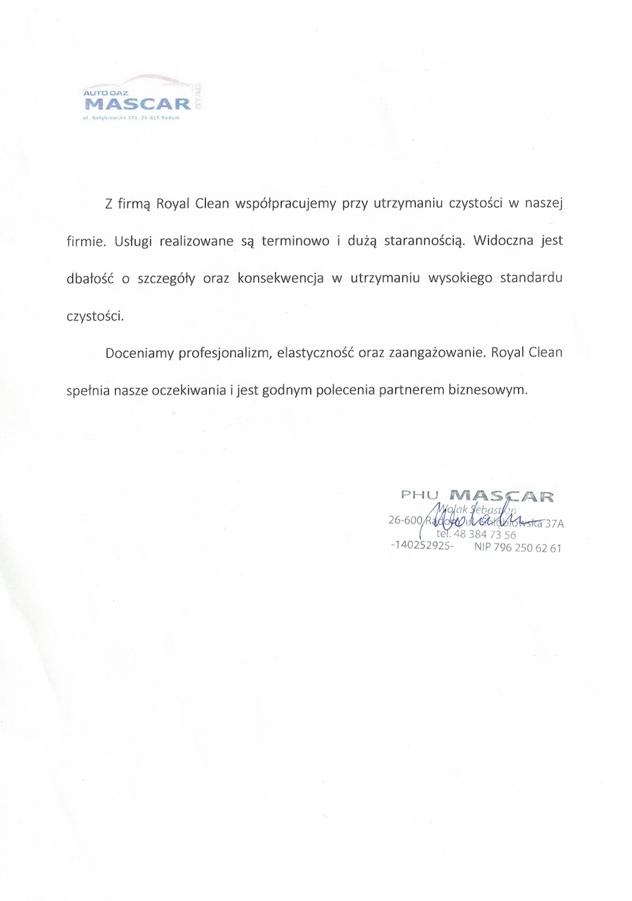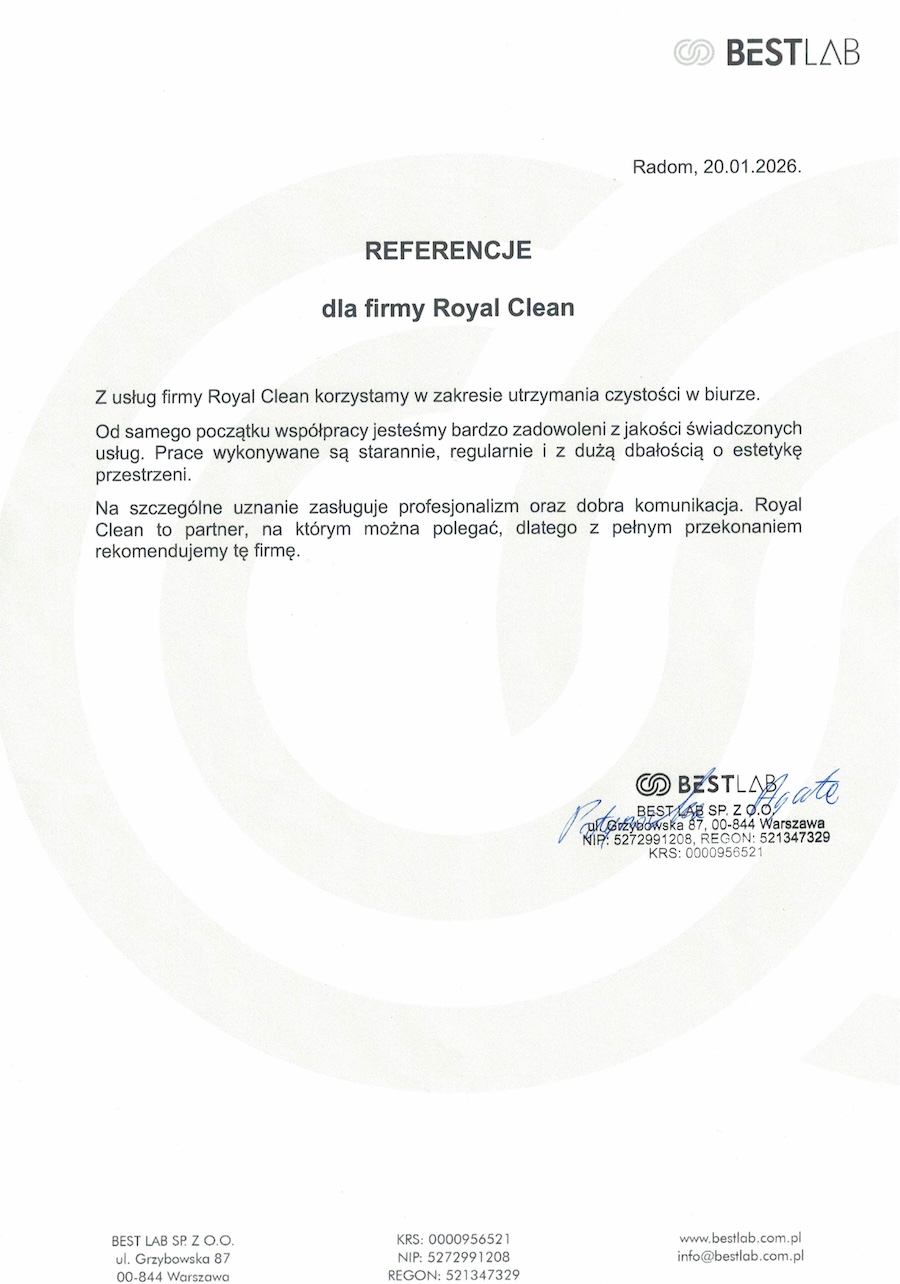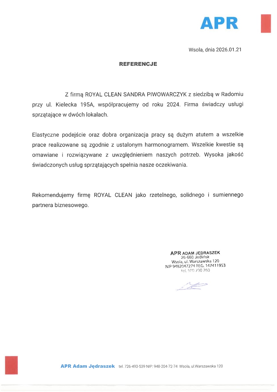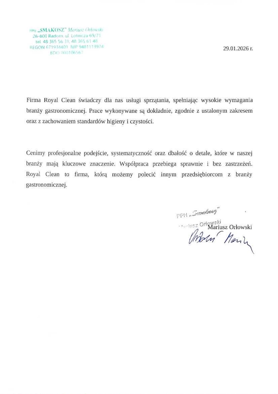 Opinie naszych klientów to najlepsza wizytówka naszej pracy. Cieszymy się, że tak wiele osób prywatnych i firm z Radomia i okolic powierzyło nam czystość swoich przestrzeni. Poniżej znajdziesz wybrane referencje i rekomendacje, które potwierdzają nasz profesjonalizm, dokładność i niezawodność.
